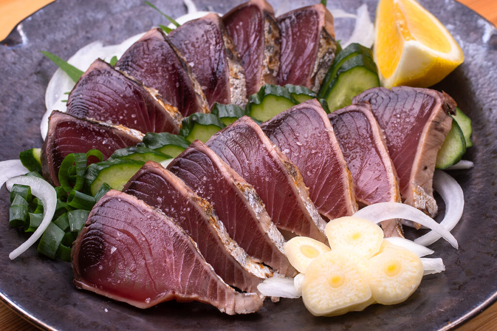 必吃料理是「鰹魚藁燒」——以稻草烈火快速炙燒表面,內部保持鮮嫩,搭配蒜片與鹽或醬油享用。配上一杯當地清酒,更能感受高知的豪爽風味。