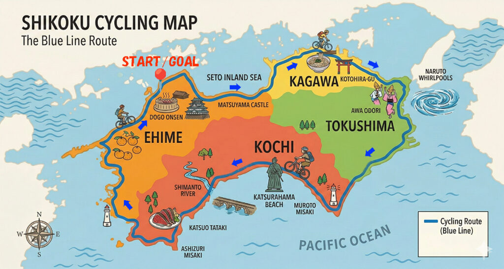 在日本四大主要島嶼之中,四國(Shikoku)面積最小,卻蘊藏最深厚的人文底蘊與旅情風景。近年來,順時針環繞整座島嶼的「四國一周自行車路線(1,000km Shikoku Circuit Route)」成為海外騎士關注的長距離騎行挑戰。為何這條路線如此吸引人?答案藏在一段擁有1,200年歷史的巡禮文化——「四國八十八所巡禮(お遍路 Ohenro)」。