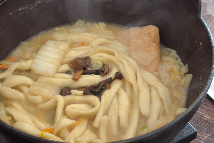 以味噌為基底,加入南瓜與大量蔬菜,是高熱量又能暖身的料理。