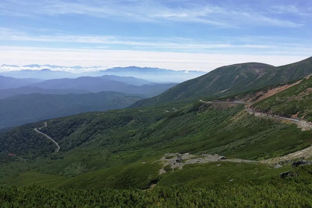 日本海拔最高的鋪裝道路(最高點 2,702 公尺)。因有車輛管制,成為單車族的夢幻路線。高山花卉、北阿爾卑斯群峰一覽無遺。