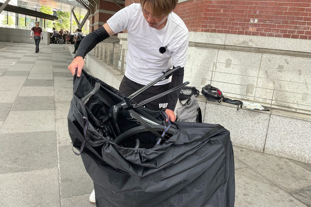 - 放入輪行袋 – 確認所有零件都在袋內,沒有突出。若有部分外露,可能會被拒絕上車。