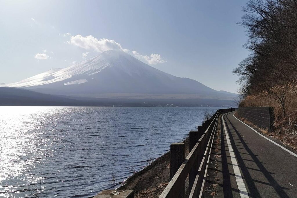你可以選擇在湖畔悠閒騎行,沿著水邊慢慢前進,尋找著名的「逆富士(Sakasa Fuji)」——富士山倒映在湖面的夢幻景象;